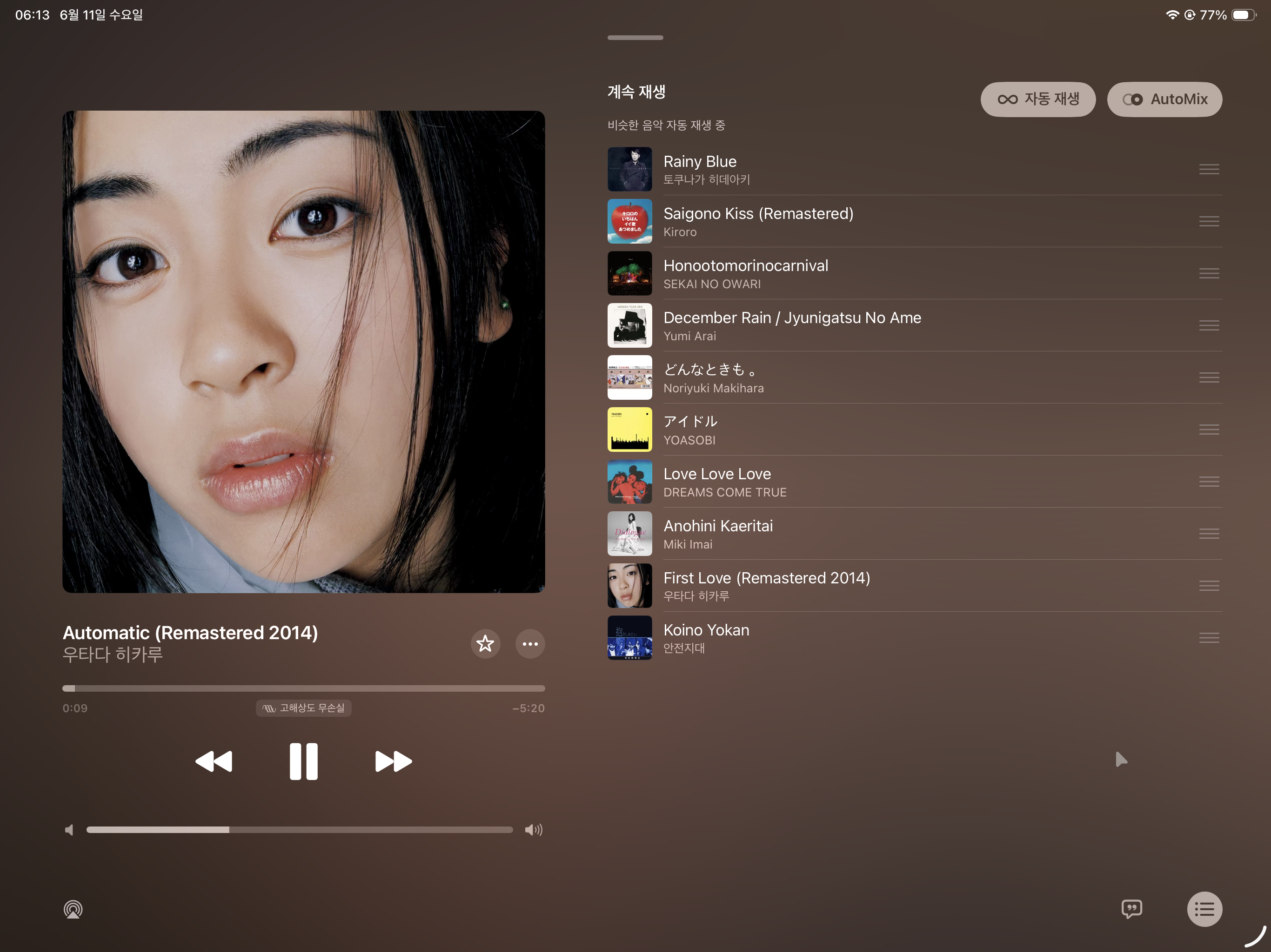 마지막으로 음악 앱에 오토믹스(AutoMix) 기능이 추가 되었습니다. 다음 트랙 이동 시 자연스러운 전환으로 조금더 스무스한 음악 감상이 가능하게 되었습니다.